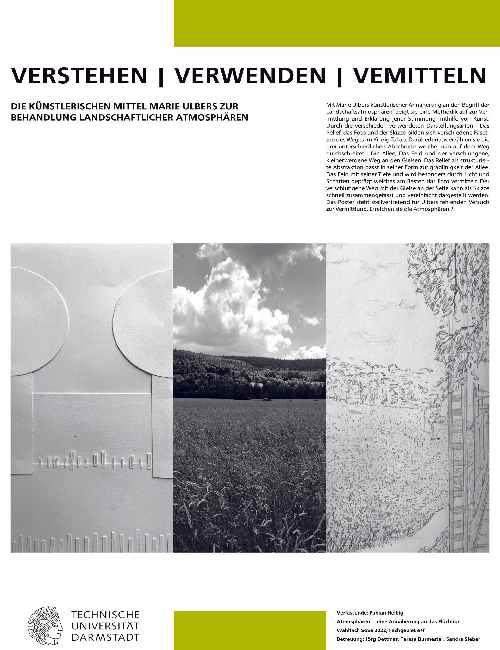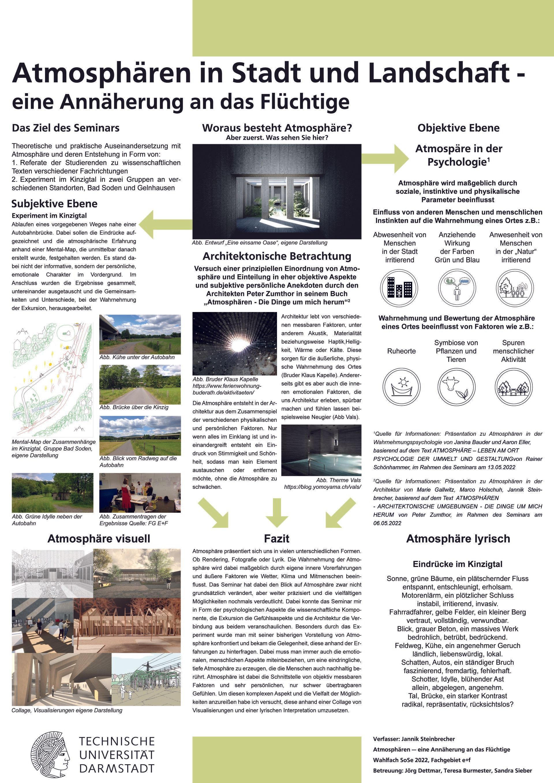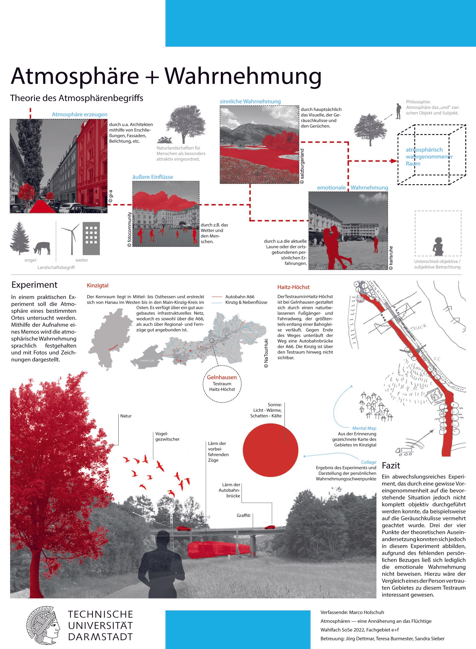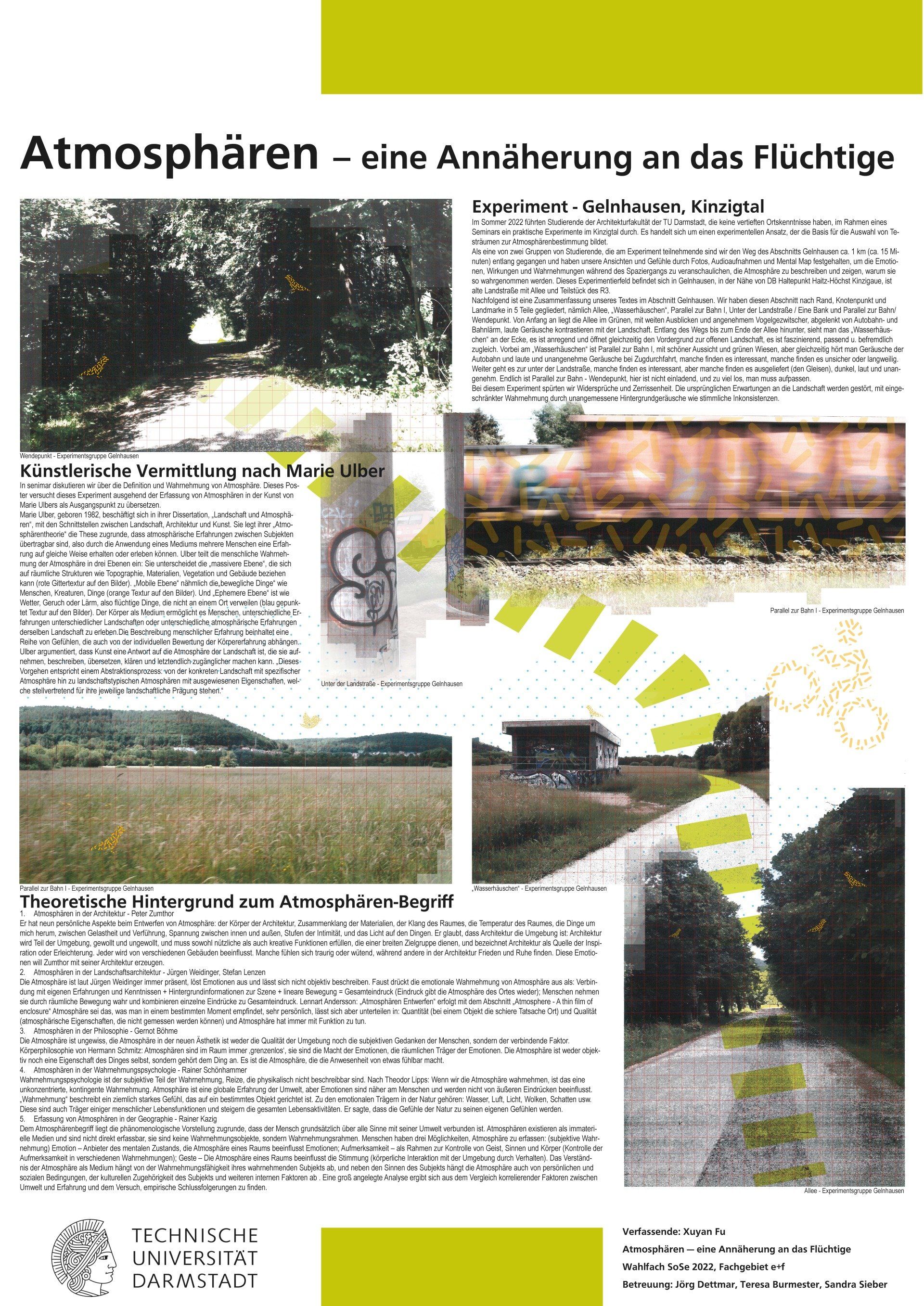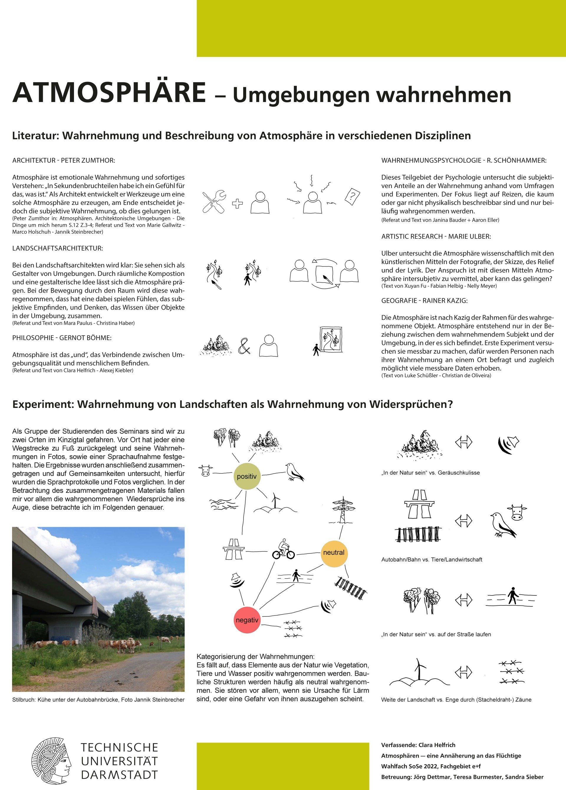 Im Sommersemester 2022 fand am Fachbereich Architektur der TU Darmstadt im Fachgebiet Entwerfen + Freiraumplanung ein studentisches Seminar zum Thema "Atmosphäre“ statt.